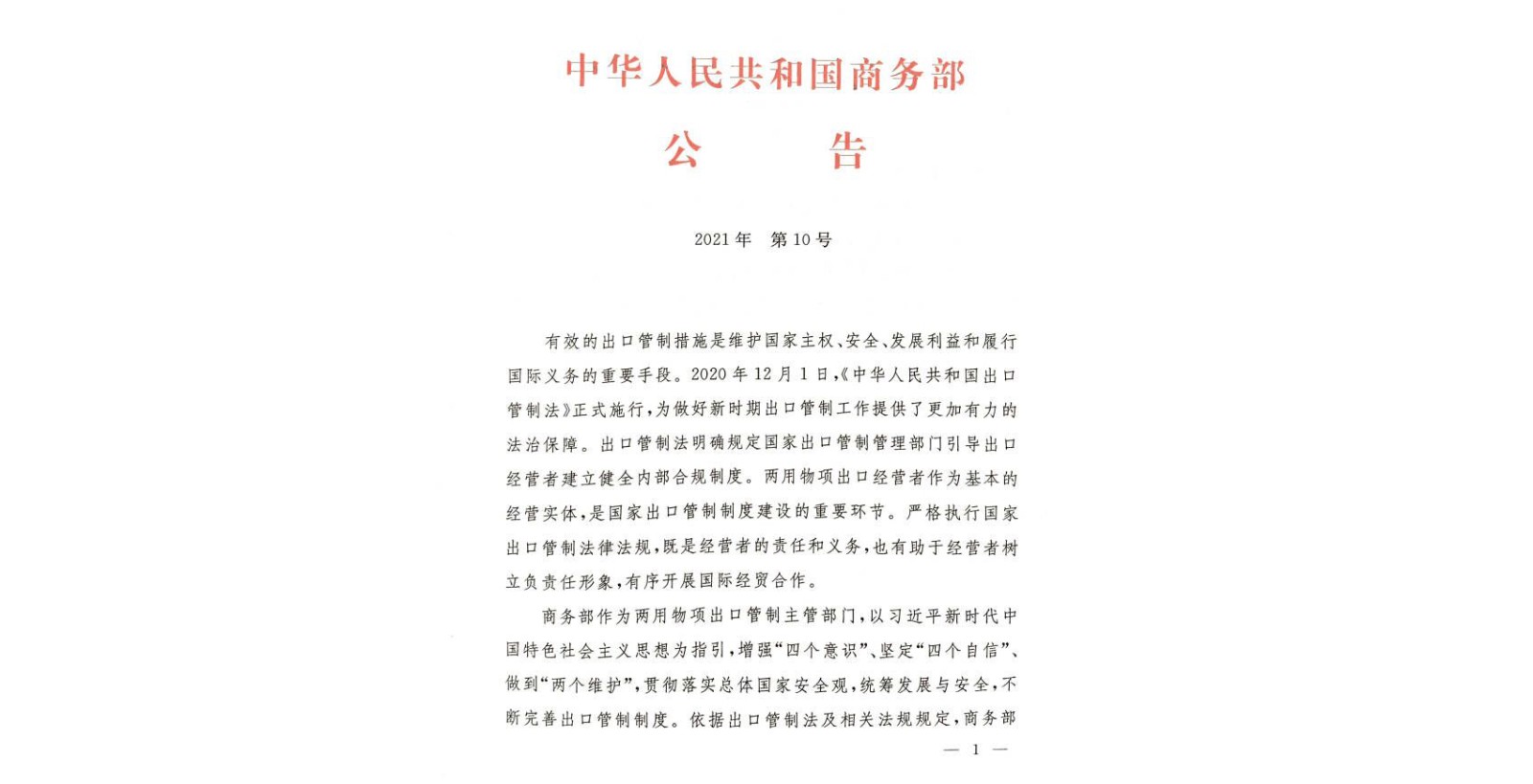 兩用物項(xiàng)出口管制條例將促進(jìn)出口管制治理能力現(xiàn)代化